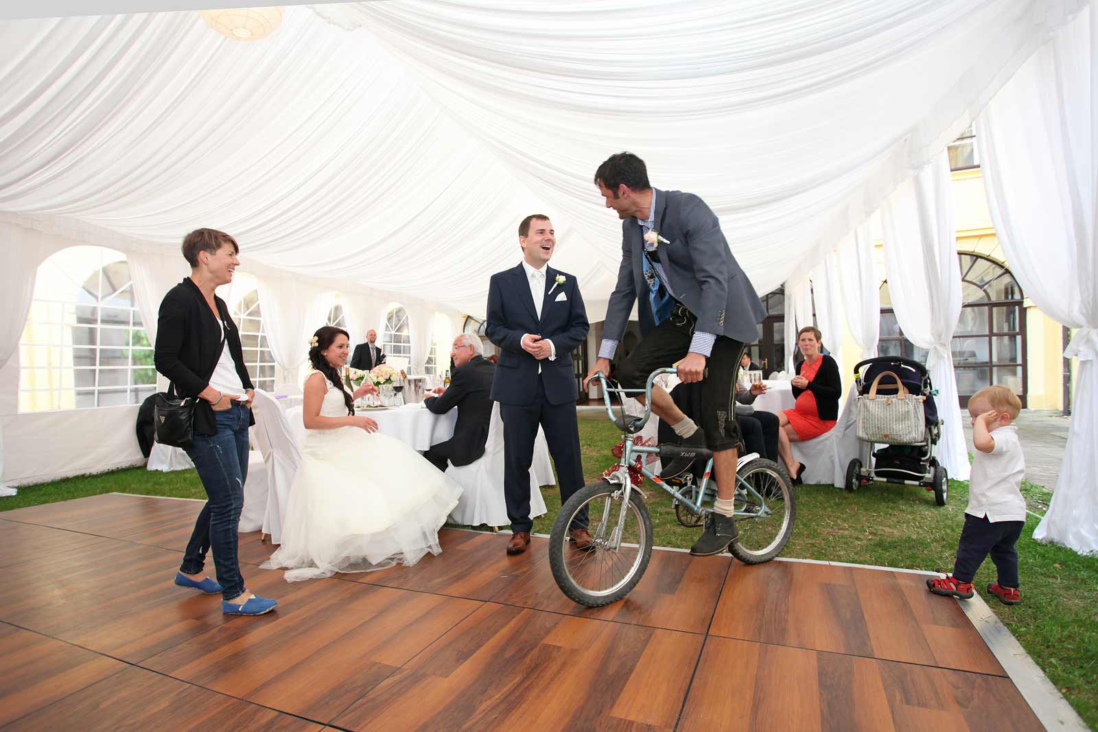 Fotograf na Vaše přání vyfotí obřad, skupinové fotografie, stylové fotografie nevěsty a ženicha, svatební pohoštění, večírek a všechny zajímavé okamžiky svatebního dne od příprav nevěsty až po večerní oslavu.